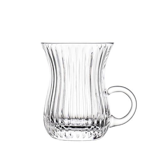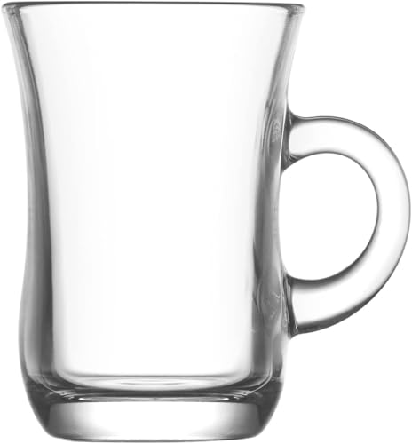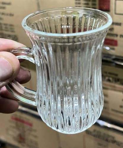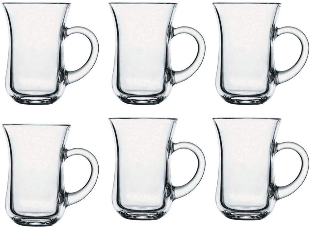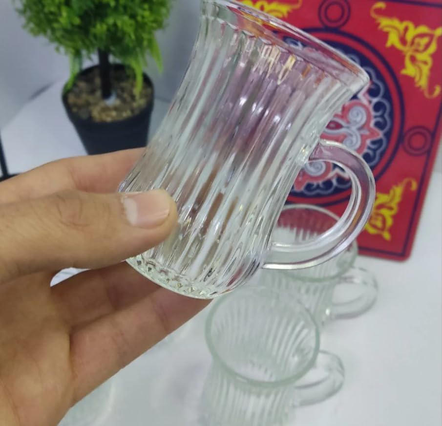 Generic - NGC Sphere Tea Mug Set | Turkish Tea Cup with Handle Set of 6 | Solid Shape No Patterns or Hidden Longitudinal Lines | Clear and Pure Glass - Made in Egypt