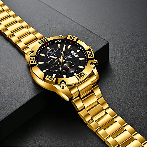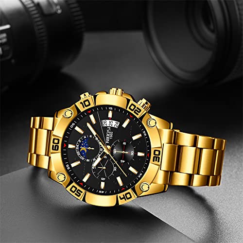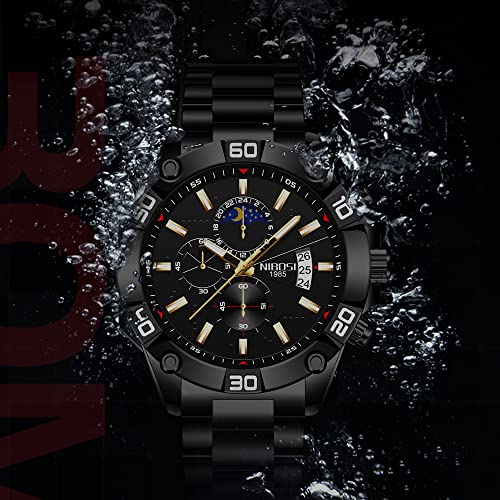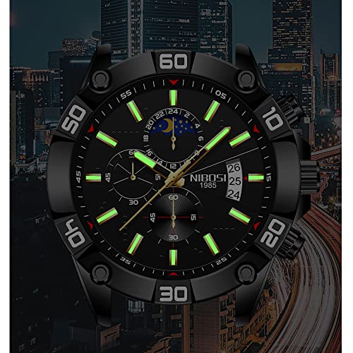 Nibosi - نيبوسي ساعات عصرية للرجال مقاومة للماء من الستانلس ستيل ساعة انالوج كوارتز مع كرونوغراف للتاريخ والزوج والاولاد لون ذهبي واسود