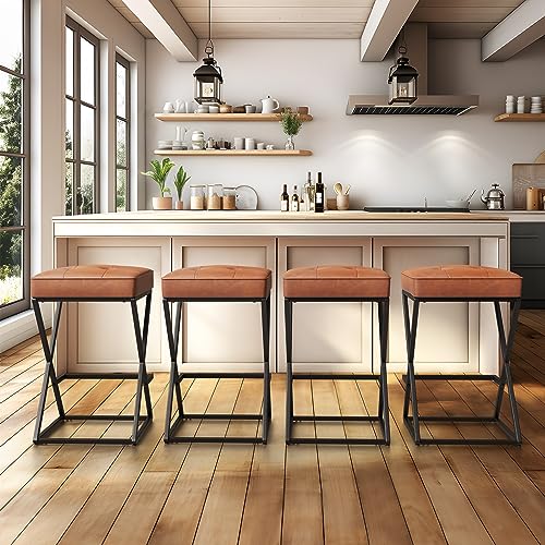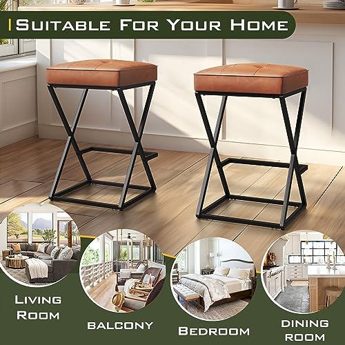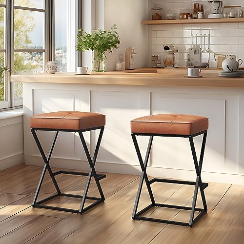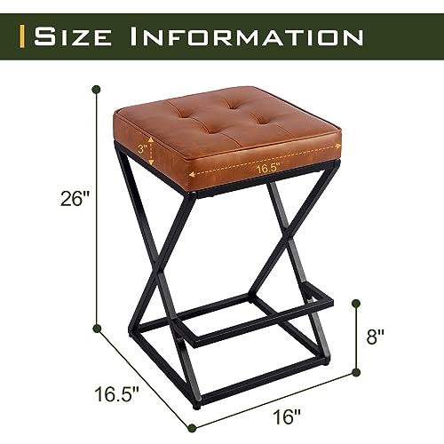 NicBex - NicBex 26 Inch Bar Stools, Modern PU Leather Upholstered Barstools Square Backless Barstools with Footrest Kitchen Island Counter Bar Stools Set of 2
