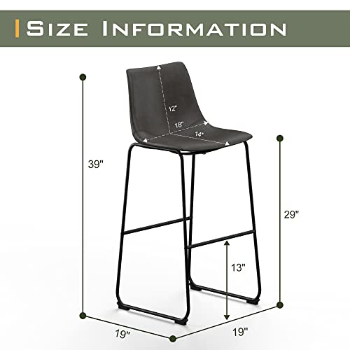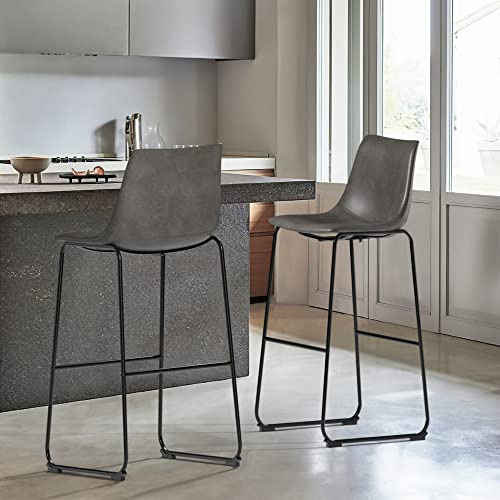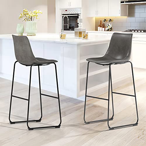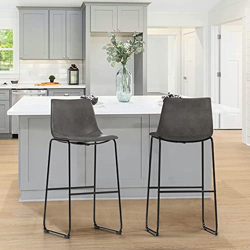 NicBex - NicBex Retro Bar Stools Crazy-Horse Leather with Metal Legs Barstools, Lounge Kitchen Island Bar Stools, Set of 2, (Grey Color)