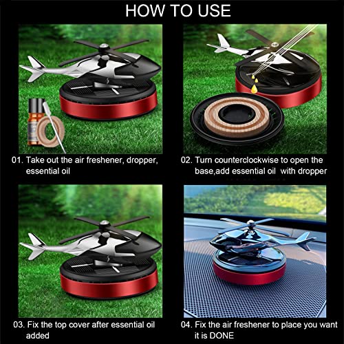 NICEADA - جهاز تنقية هواء السيارة على شكل طائرة هليكوبتر دوارة تعمل بالطاقة الشمسية، أكسسوارات الديكور الداخلي للمنزل والسيارة (احمر)