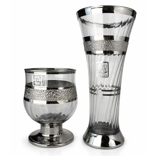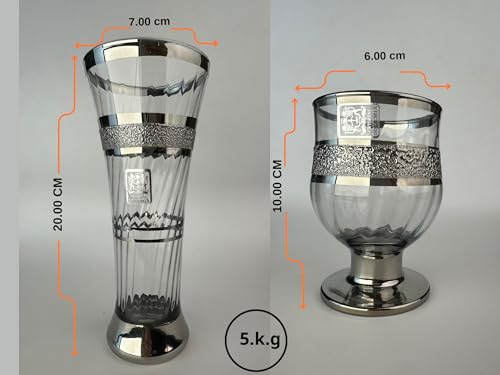 - جودة عالية ومتانة: مصنوعة من زجاج عالي الجودة مع تفاصيل معدنية فضية فاخرة، والطقم يزن 5 كيلوغرام مما يعكس صلابته ومتانته