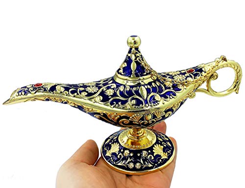 NICHNAOO - Vintage Aladdin Magic Genie Lamp Incense Burners Metal Carved Wishing Light for Home Tabletop Decoration, Party, Birthday Delicate Gift (Blue)