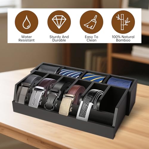 - Built to last: the belt storage is made of high-quality bamboo wood, which is environmentally friendly, durable and moisture-resistant. It fits all kinds of belts and buckles, and you can put it on your dresser, closet or on the counter.