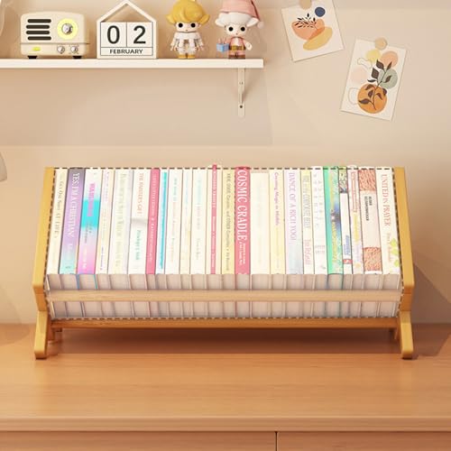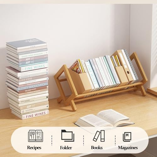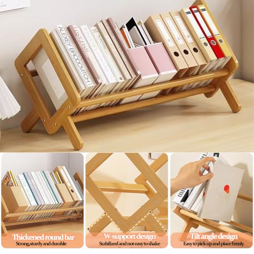 Niciksty - Desktop Bookshelf Organizer, Wood Office Tabletop Book Storage Rack for Small Spaces, Tilting Bookcase for Office, Home CDs/Magazine/Cookbook/Books Display