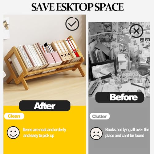 - Efficient and Aesthetically - Desktop bookshelf organizer provides a clutter-free and organized environment, helping us maintain focus and productivity during work or study hours.