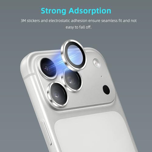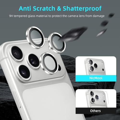 NicMool - Camera Protection Compatible with iP 17 Pro/Pro Max, Tempered Glass Rear Lens, Aluminium Alloy Camera Protective Film for iP 17 Pro/Pro Max - Silver
