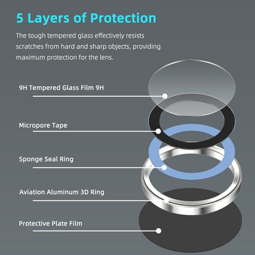 - [Anti-scratch and anti-fingerprint] The protective lens with 9H hardness tempered glass and metal ring made of aviation aluminum, has a special anti-scratch and anti-fingerprint treatment. When in use, it leaves no fingerprints or oil stains, and is easy to clean, maintaining the original shine and vibrancy.