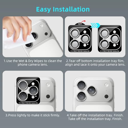 - [Compatibility] NicMool camera lens protector specially designed for iP 17 Pro / iP 17 Pro Max, not for other models. Please check your phone model before purchasing.
