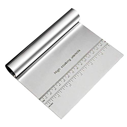 - IDEAL TOOL TO CHOP AND DIVIDE ---- This kitchen scraper is tall enough to keep hands away from food and makes scooping and transferring your chopped food into the pot mess free and done in a snap! It measuring guide on the blade allows you to easily measure and cut pasta and pastry dough.
