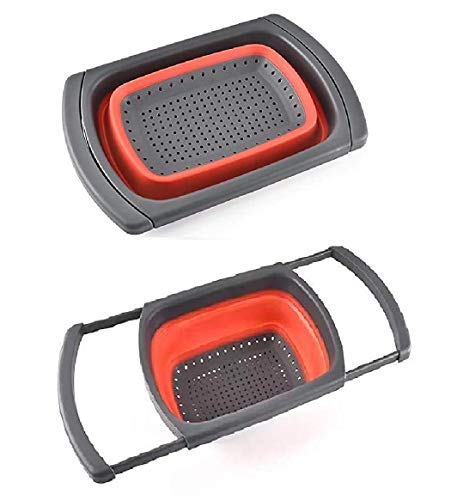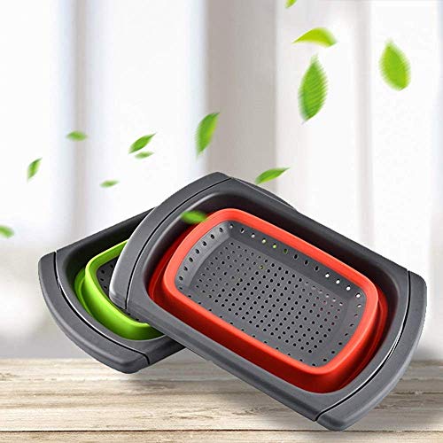 Nidy - سلة تصريف قابلة للطي من نيدي، قطعة واحدة، سلة تصريف للمطبخ قابلة للطي مصممة بمقبض تلسكوبي للفاكهة والخضار، حوض تصريف من السيليكون، أدوات مطابخ، مصافي طعام