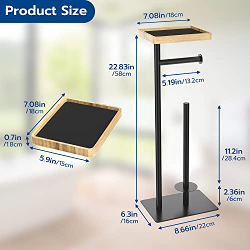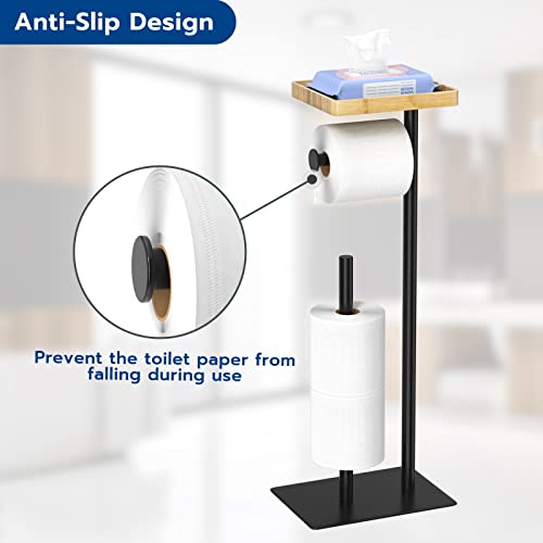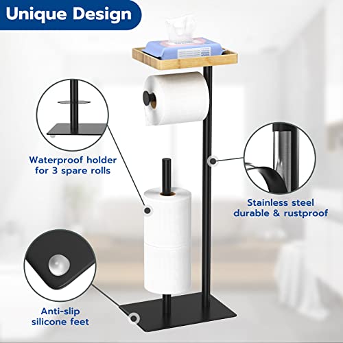 niffgaff - niffgaff Free-Standing Toilet Roll Holder with Bamboo Top Storage Shelf, Black Toilet Paper Roll Holder Stand, Floor Standing Toilet Roll Dispenser Storages 4 Reserve Rolls