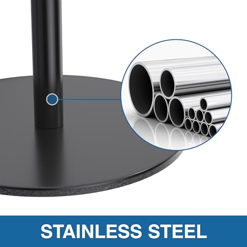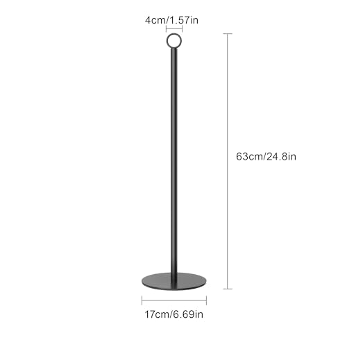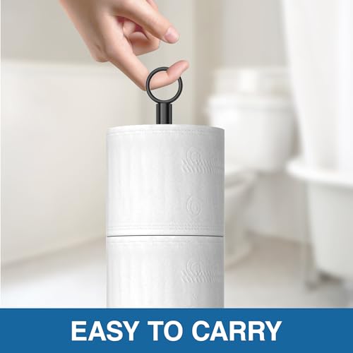 - SPACE SAVING - Size:D 6.69"*W 6.69"*H 24.8". This freestanding toilet paper holder takes up very little space and is perfect for any bathroom and powder room. There is a loop on the head for easy lifting of the toilet paper holder.