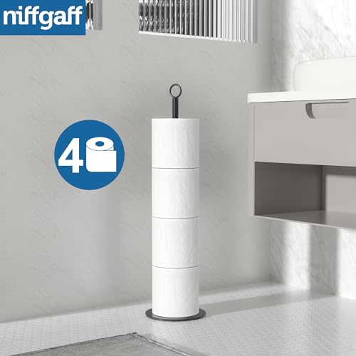 niffgaff - niffgaff Toilet Rolls Storage Holder Stand, Toilet Roll Holder Free Standing with Reserve Function, Stainless Steel Toilet Paper Holder Stand for Bathroom Holds 4-6 Rolls