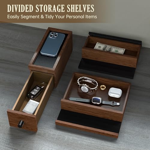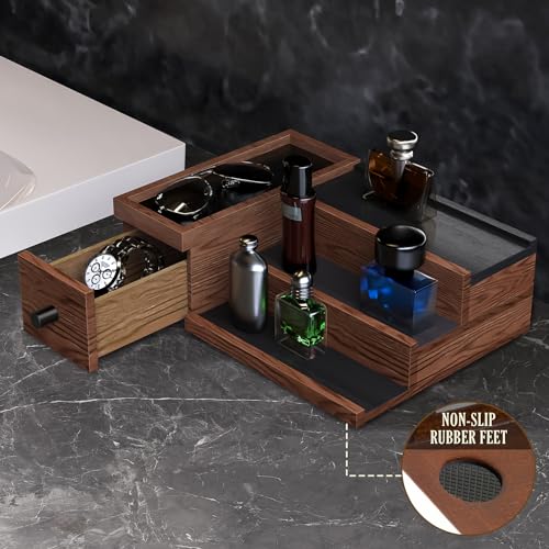 NiHome - ان اي هوم منظم كولونيا خشبي مصنوع يدويًا مع مساحة تخزين متعددة المستويات لتنظيم اكسسوارات الرجال العصريين، مساحات تخزين سرية لأغراضك الثمينة، تصميم أنيق من خشب الجوز لمظهر راقي