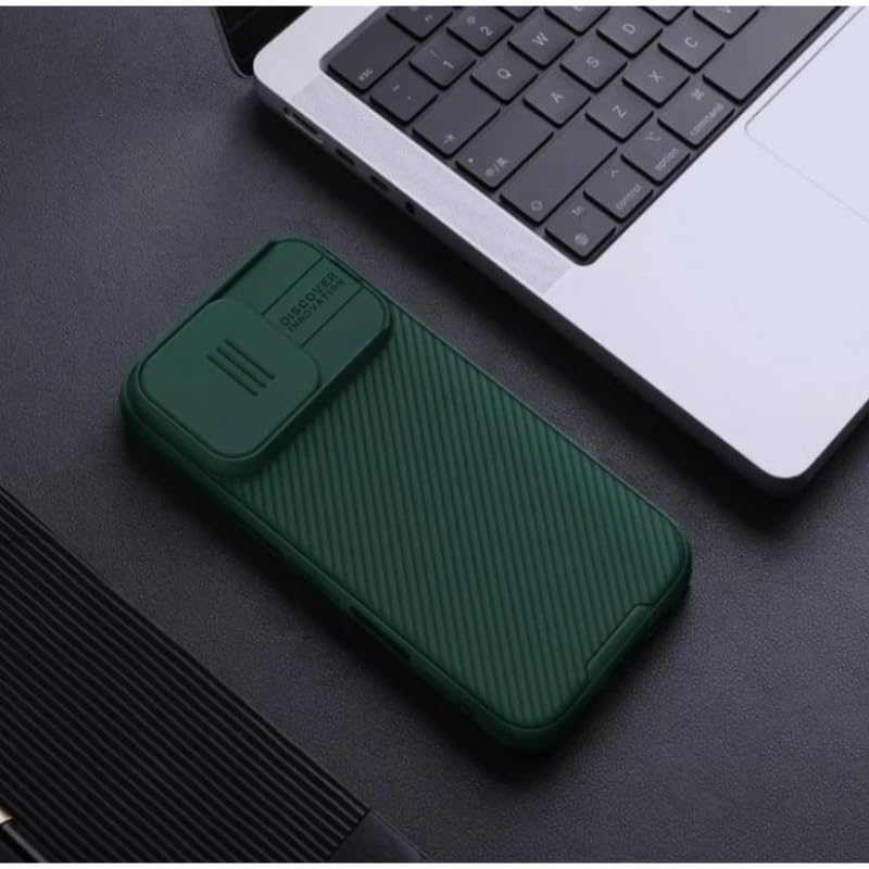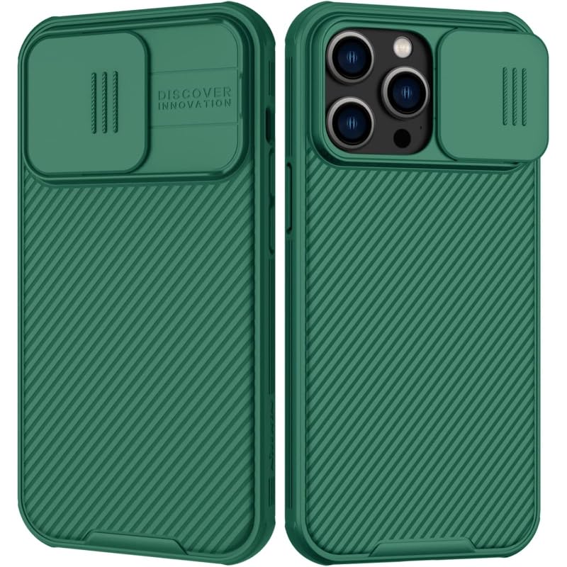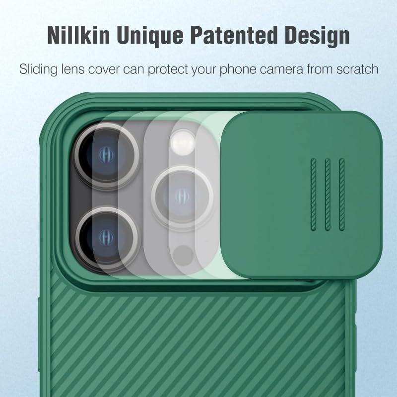 Nillkin - جراب حماية مغناطيسي متين مضاد للصدمات كام شيلد بحواف ناعمة من البولي كربونات والبولي يوريثين الحراري الممتص للصدمات من نيلكن، غطاء كاميرا منزلق لحماية الكاميرا يناسب آبل آيفون 16 برو (أخضر غامق)
