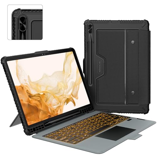 Nillkin - Nillkin Galaxy Tab S7 Fe Case with Keyboard Backlit, 12.4" Samsung Galaxy Tab S8 Plus/S7 Plus 5G Case, Detachable Keyboard with Kickstand and Slide Camera Cover, Multi-Touch Trackpad, S Pen Holder