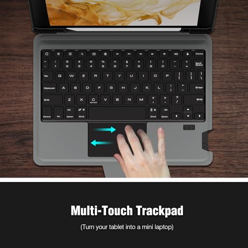- 【Large, click-anywhere trackpad 】 - This Samsung Galaxy Tab S7 Fe Case with Keyboard allows you to enjoy the convenience of a high-precision touchpad at work, using multi-finger gesture control, including swiping, pinching, etc. to browse the web and edit documents at a faster speed, Unique slot for the use of S Pen, which can perfectly cope with whether it is the magnetic attraction on the side of the Tab S8+ S7+ or the charging on the back. Laptop-like keyboard with full row of shortcut keys for one-tap access to volume controls, media controls, and more.