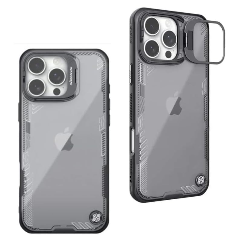 Nillkin - جراب واقي بإطار دعامة ايس بليد من نيلكن، متين مضاد للصدمات مع ظهر صلب وحواف ناعمة من البولي كربونات والبولي يوريثين الحراري، غطاء حماية للكاميرا يناسب آبل آيفون 16 برو، أسود