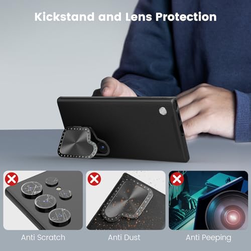 - 【Upgrade Lens Caps】 - This is a metal camera cover specially designed for the samsung S24 ultra. When you open the cap, you get a phone holder that you can easily enjoy movies and leaving your hands free. When closed, it becomes an anti-peeping armor, protects your lens from scratches and dust, and your private photos will not be captured by hackers.