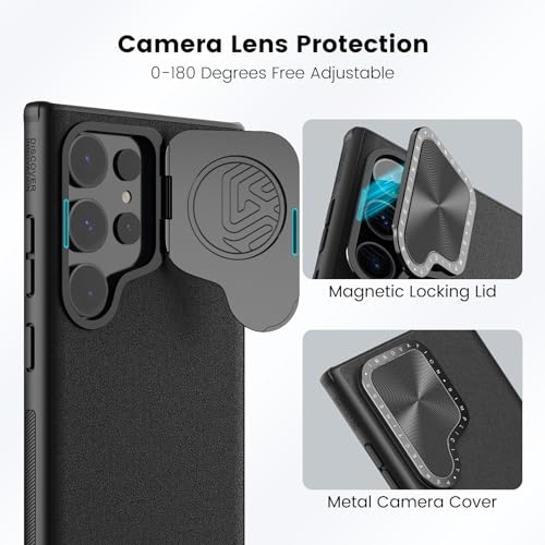 Nillkin - NILLKIN Samsung Galaxy S24 Ultra Case with Camera Lens Cover Protector, CamShiled Prop Shockproof Phone Cover with Kickstand Cap Protect Privacy, Anti Spy Armor for Samsung S24 Ultra 6.8 inch, Black