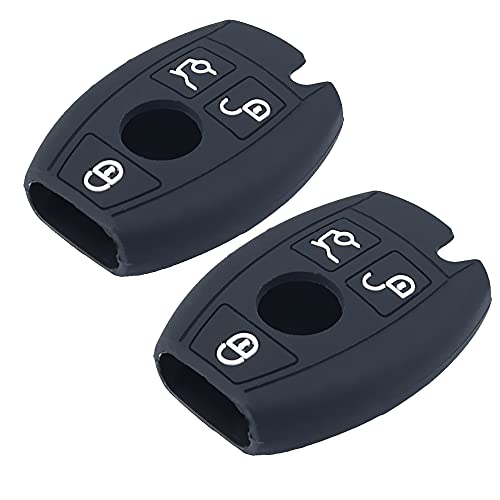 Ninice - غطاء مفتاح سيارة من السيليكون من نينايس لسيارة مرسيدس بنز 2002-2018 الفئة سي، سي ال كيه، سي ال، اي، جي ال، جي ال كيه، ام ال، ار، اس، اس ال، اس ال كيه، غطاء مفاتيح ذكية عن بعد (لون أسود واسود)