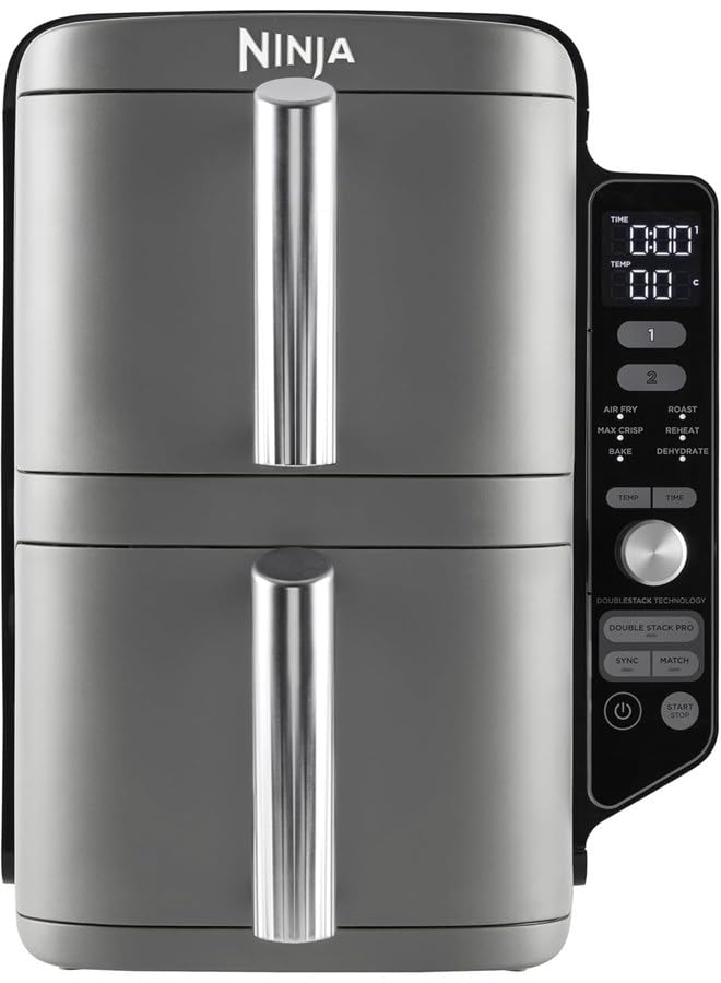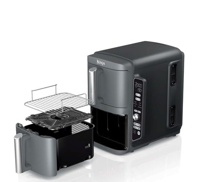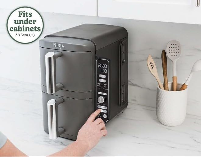 NINJA - Ninja Double Stack XL Air Vertical Double Drawer Fryer with 4 Cooking Levels, 2 Drawers and 2 Racks, Space Saving Design, 9.5L Capacity, 6 Cooking Functions, 8 Portions