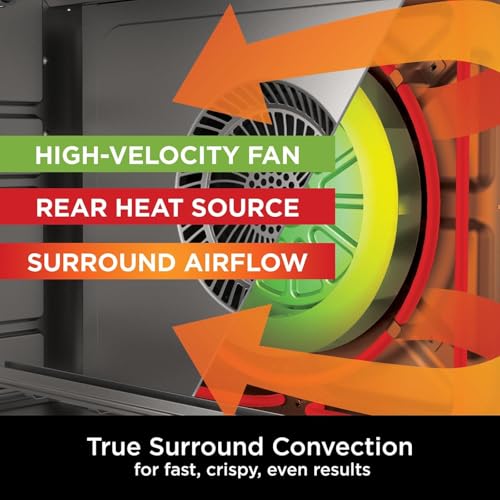 - 10 COOKING FUNCTIONS: Air Fry, Roast, Whole Roast, Grill, Bake, Pizza, Dehydrate, Reheat, Toast and Bagel. True Surround Convection circulates powerful airflow for fast, crispy and even results.