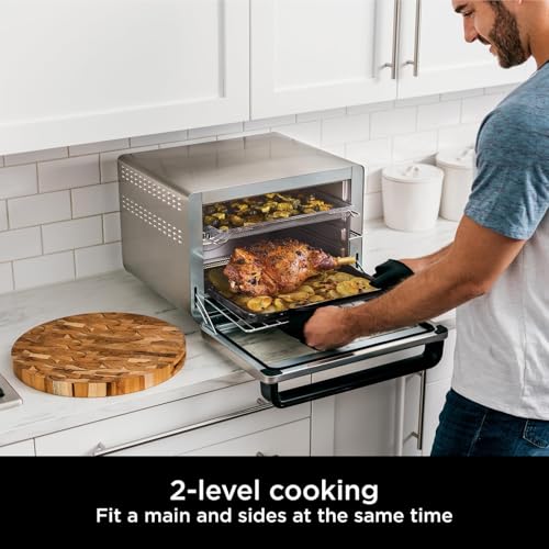 - 2-LEVEL COOKING: This large capacity countertop oven cooks food on 2 levels, fit 2 pizzas at once. Perfect for family-size meals, fit a main and sides at the same time, no need to use 2 appliances.