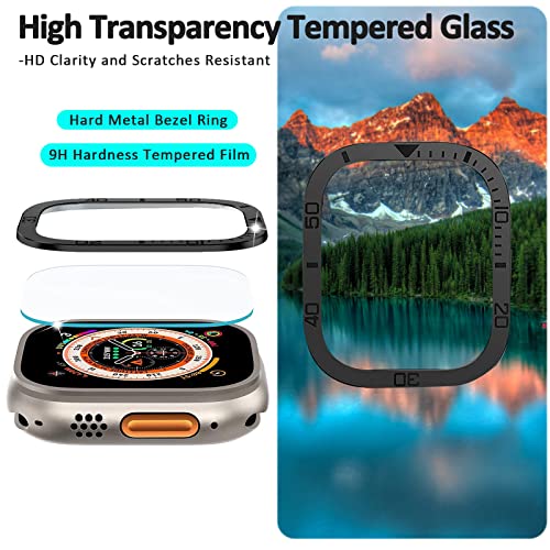 - 〖Compatibility〗- Premium Metal Protective Bezel Ring and Tempered Glass Screen Protector ONLY Compatible with Apple Watch Ultra 49mm (Tips: only bezel ring, Not include watch or band).