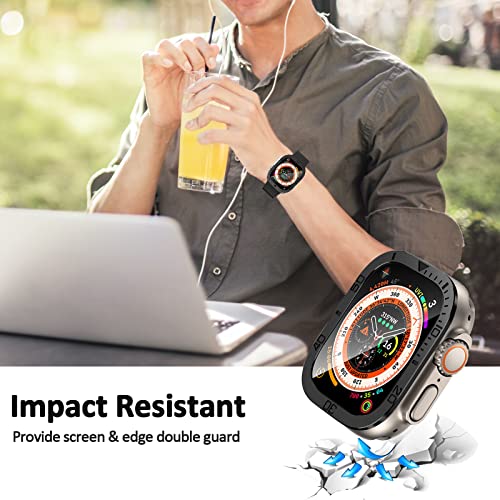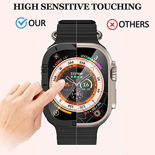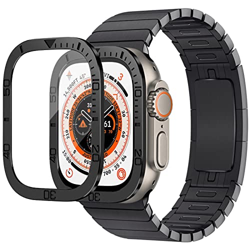 - 〖Superior Metal Material〗- Designed with scratch resistant,anti-scratches,high-grade metal materials & upgraded clear tempered glass,make your Apple Watch Ultra 49mm look more classy and professional,also provides 2- layer screen protection.The refined solid stainless steel iwatch ultra 49mm bezel ring with fine polish and double layer electroplating,smooth touch feeling and never paint off.Prevent the edges and screen getting away from scratches and shock.