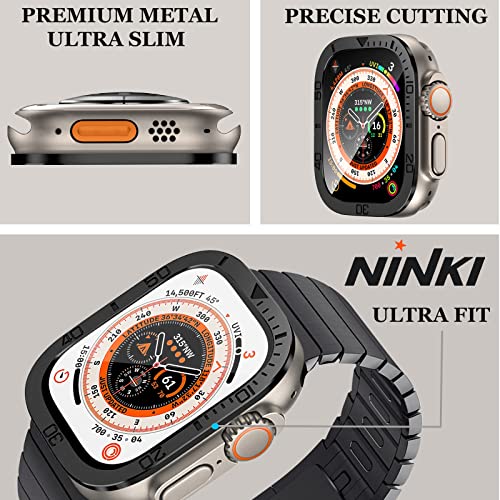 NINKI - NINKI Compatible with Apple Watch Ultra Bezel Styling 49mm & Tempered Glass Screen Protector,Metal Bezel Ring Protective Case for iWatch Ultra 49mm Bezel Accessories Apple Watch Ultra 49mm Bezel Black