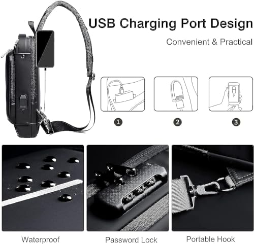 NISHIV - شنطة كروس صغيرة مقاومة للماء مع منفذ شحن USB للرجال من نيشيف، مناسبة للعمل في الهواء الطلق والمشي لمسافات طويلة والجري والرياضة والسفر وركوب الدراجات