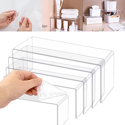 - √【Perfect Display Stands 】This display riser shelf is perfect for jewelry pedestal and shoe display. transparent enough to allow you to clearly enjoy the displayed items. And each of acrylic display risers has its own protective film. Please tear off the protective film before using.