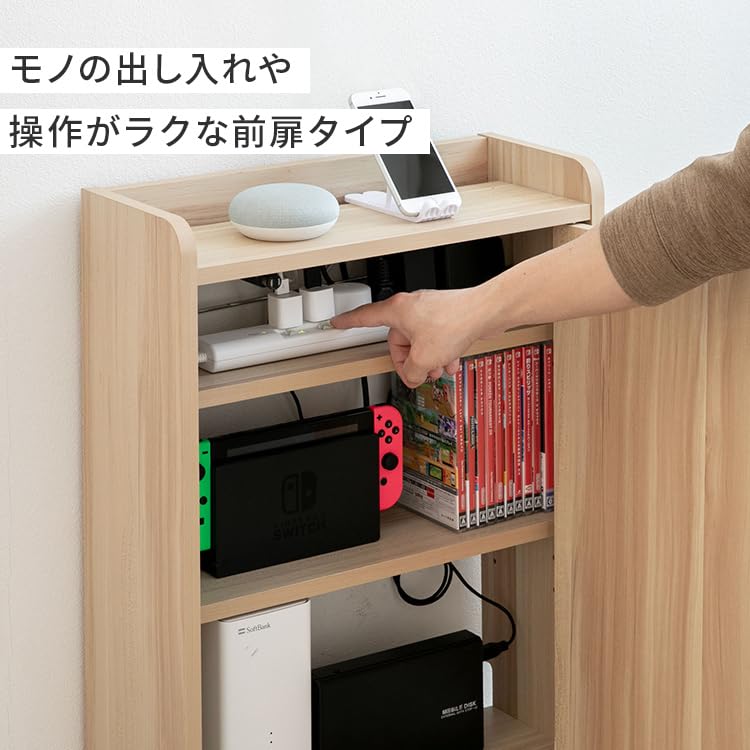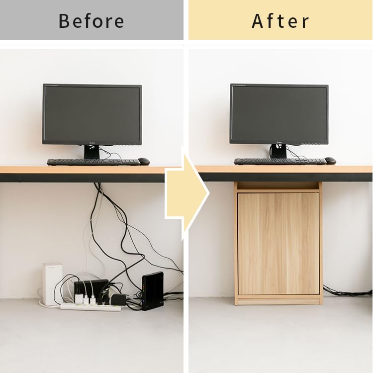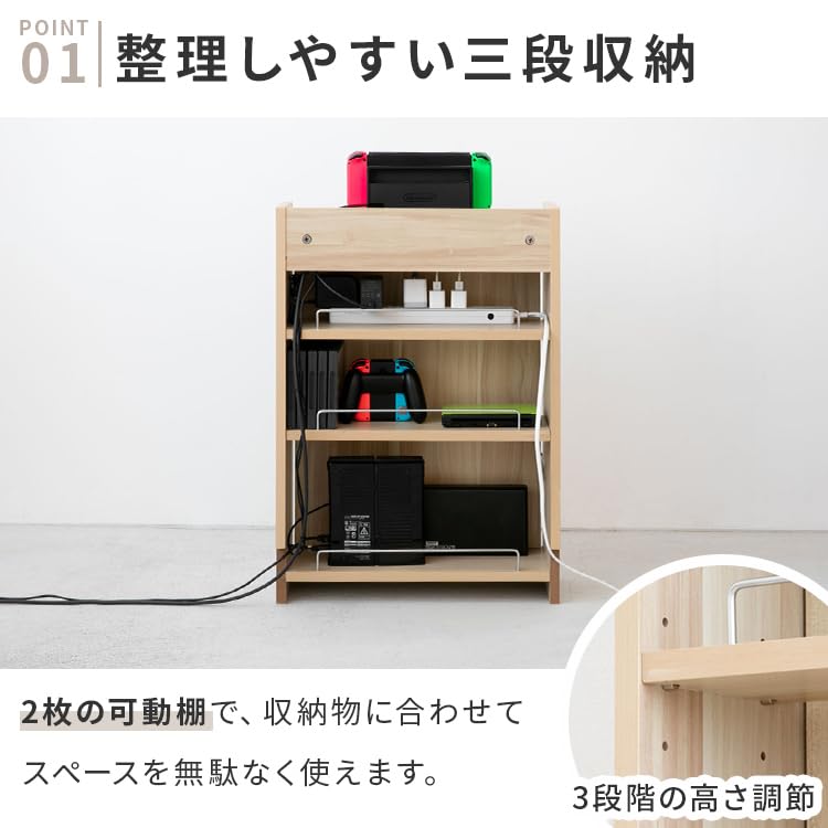 - Point 1: The 2 inner shelves with 3 tiers for easy organization, so you can adjust the height to fit your storage needs and save space. Each movable shelf has 3 height adjustments. Point 2: The open back for easy wiring has a gap for cords to pass through, making it easy to organize your wires. Cord slits to fit perfectly to the wall and keep out dust Easy to clean. Point 3: Conceals all outlets and prevents dust and pet hair from entering the power tap or outlet, preventing tracking phenomenon. When you want to use an outlet, simply open the front door to secure the power supply. There is a gap between the movable shelf and the wall, so it can be installed perfectly even when it overlaps with an outlet