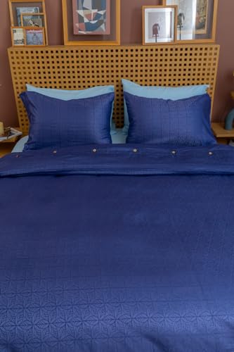 nit - nit Kaleido Jacquard Duvet Cover Set Blue 3 PC Bed Linen Jacquard 100% Egyptian Cotton