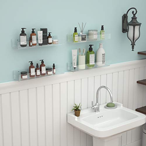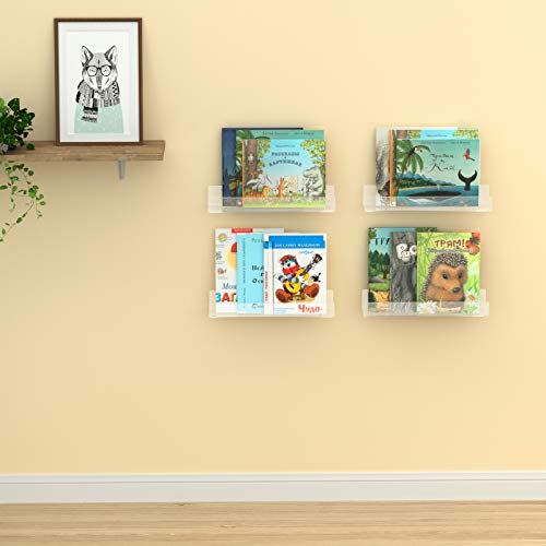 NIUBEE - نيوبي رف كتب عائم غير مرئي من الاكريليك مقاس 16.5 انش ارفف شفافة للاطفال لعرض الكتب اكثر سمكا بنسبة 50% مع مفك براغي مجاني مصقول متعدد الألوان