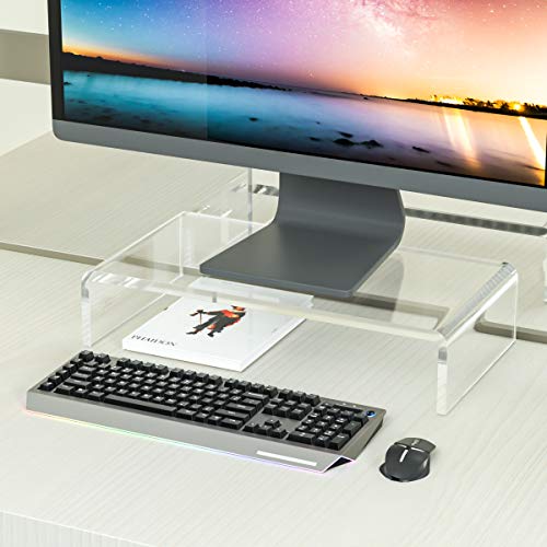 NIUBEE - حامل شاشة كمبيوتر من الاكريليك للكمبيوتر المحمول والكمبيوتر المكتبي وشاشة التلفزيون والطابعة مناسب للمكتب والمنزل والمدرسة من نيوبي، شفاف