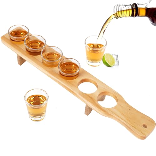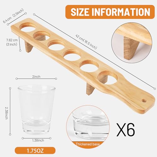 - ELEGANT DESIGN The NIUBEST Shot Glasses Serving Set offers a gorgeous design, consisting of 6 clear shot glasses and a sturdy wooden tray that will enhance any party or bar