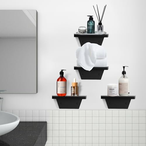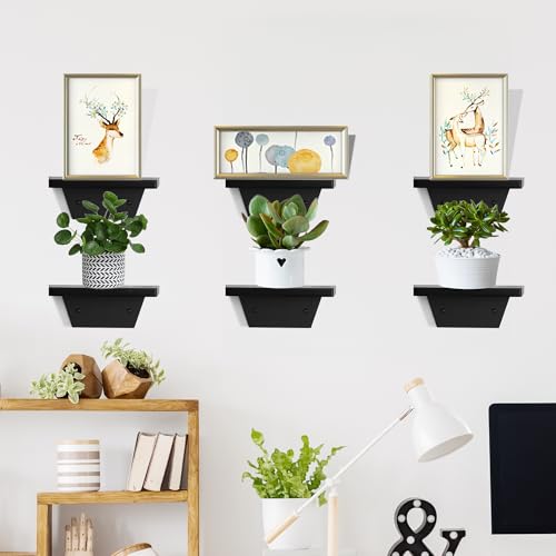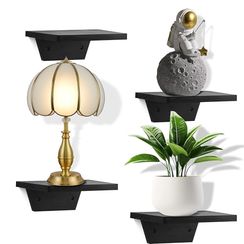 NIUBEST - Trapezoidal Floating Shelves, Small Wall Shelves, Set of 4, Mini Wooden Shelves for Plants, Storage and Decoration, Chic for Living Room, Bedroom, Kitchen, Office Decoration (Black)