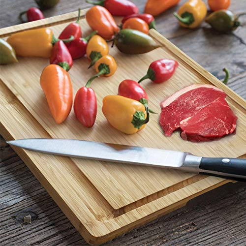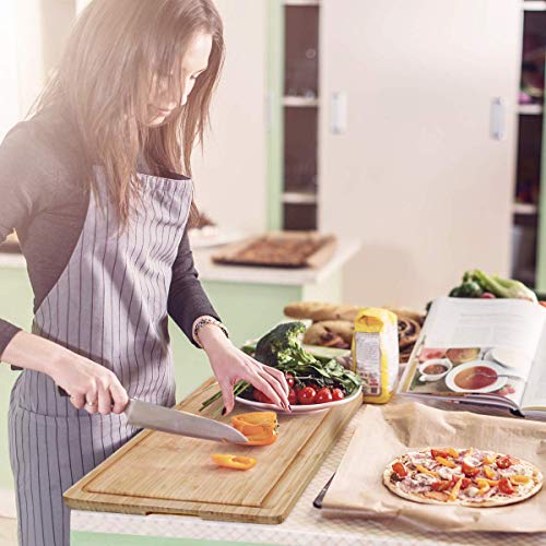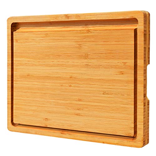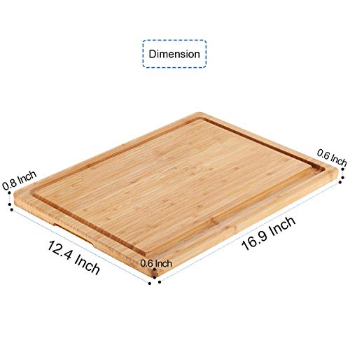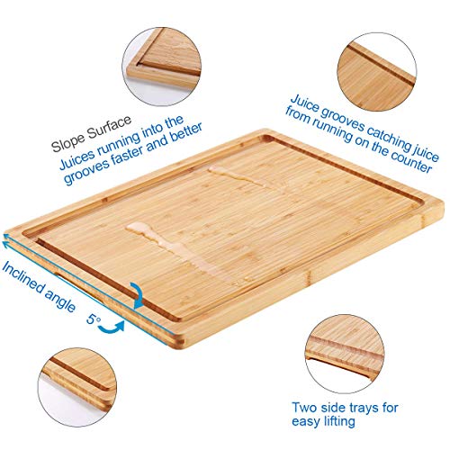 NIUXX - نيوكسكس لوح تقطيع كبير مع صينية اخدود للتنقيط، لوح تقطيع سميك قابل للعكس من الخيزران العضوي مقاس 43 × 32 × 2 سم، صينية تقديم شديدة التحمل، رائعة للحوم والخضروات والفواكه والجبن