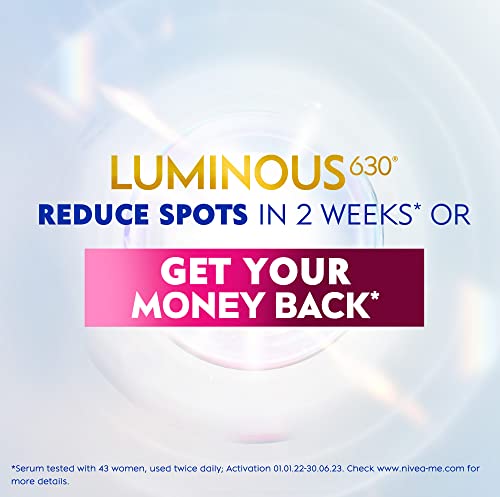 NIVEA - سائل لومينوس 630 ايفن جلو للوجه المضاد للبقع الداكنة من نيفيا، حماية من الاشعة فوق البنفسجية الطويلة والمتوسطة، لبشرة بدون بقع، حمض الهيالورونيك المرطب وفيتامين E، سعة 40 مل، 50 SPF