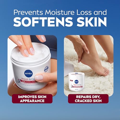 NIVEA - نيفيا برطمان كريم ترطيب اليوريا (400 مل)، كريم الجسم الغني والمرطب، يرطب البشرة الجافة باليوريا والجليسيرين لمدة 72 ساعة، مثالي للجسم واليدين والوجه