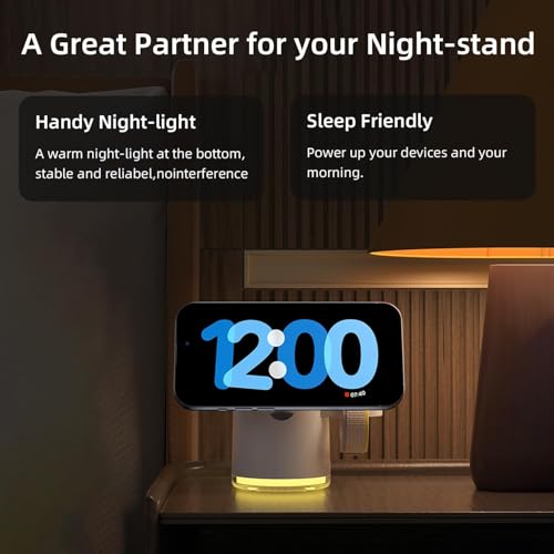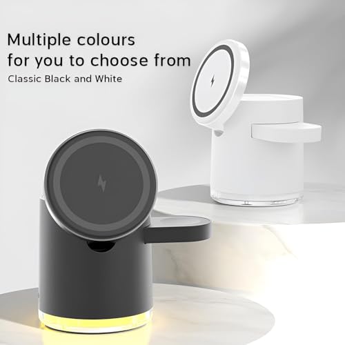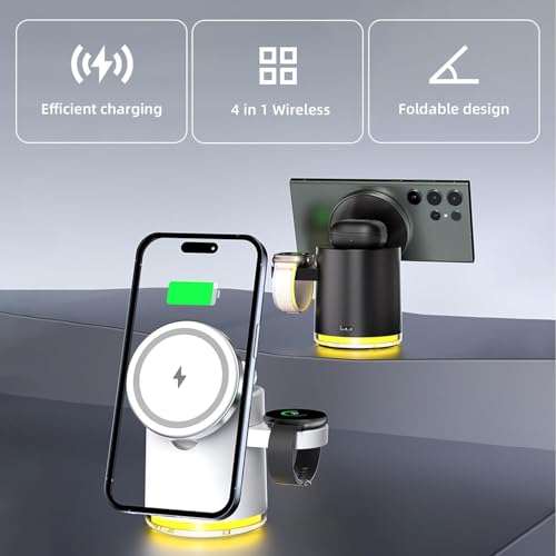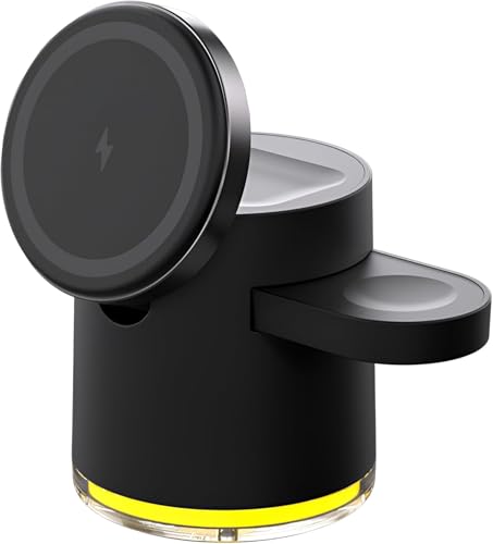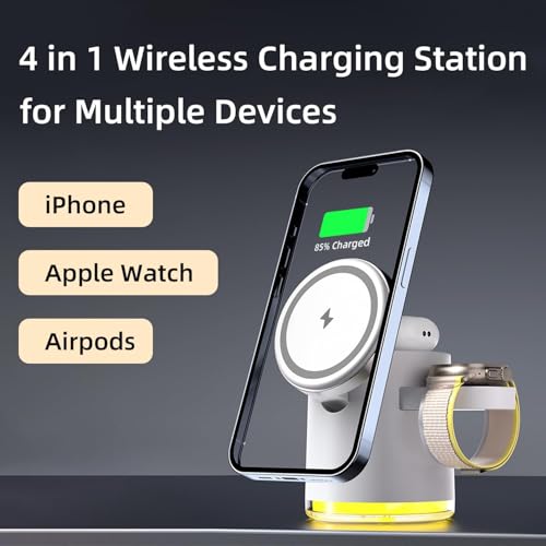 - 【4 in 1 Wireless Charger】The magnetic charging station for iPhone is a one-stop solution to mag-safe devices charging, free from messy tangled cables. The device can charge upto 3 devices at the same time while using the lamp function. Simple in operation, but convenient for your life.