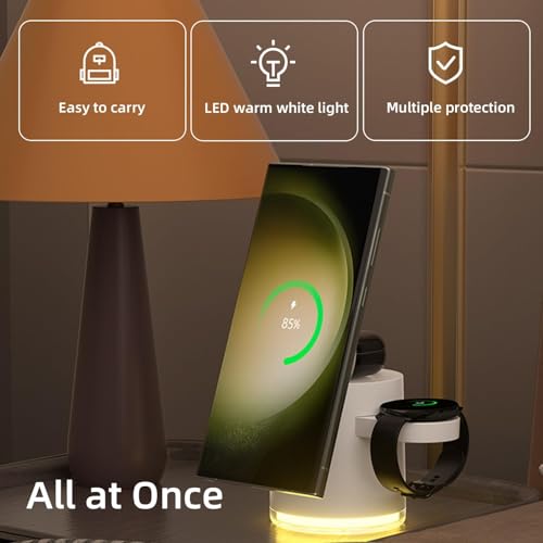 - 【Wide Compatibility】The charging station with night light is compatible with iPhone 15/15 Plus/15 Pro Max/15 Pro/14 pro max/14 pro/14 plus/14/13 pro max/13 Pro/13/13 mini/12 Pro Max /12 pro/12/12 mini and i Watch 9/Ultra 2/8/Ultra/SE/SE 2/7/6/5/4/3/2, Air-pods 3/2 Mag-Safe version, Air-pods pro. Note: Not for others smart watches.