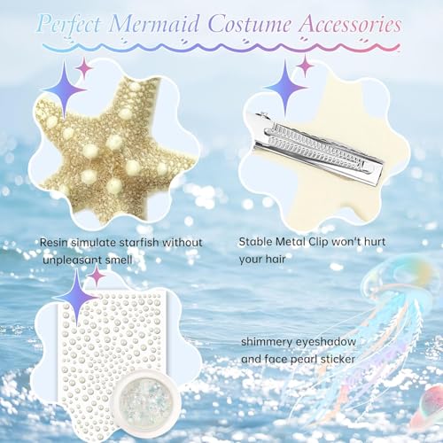 - Complete Mermaid Look: Our 3-in-1 Mermaid accessories set includes 2 starfish bobby pins, 2 pearl stickers and 2 glitter to give you everything you need to perfect the mermaid look