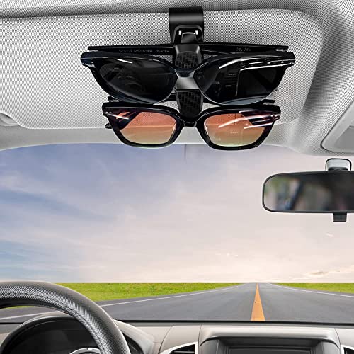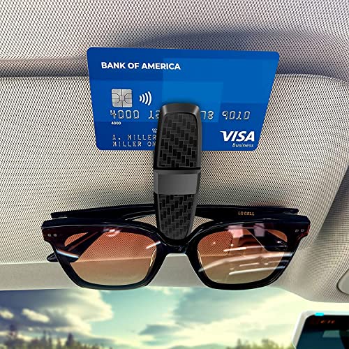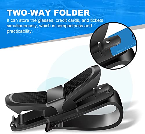 Nnewvante - حامل نظارة شمسية مزدوج لحاجب الشمس في السيارة مع مشبك للبطاقات والتذاكر مناسب لجميع السيارات ومزود بمشبك دوار بزاوية 180 درجة، قطعتين (لون أسود كربوني)
