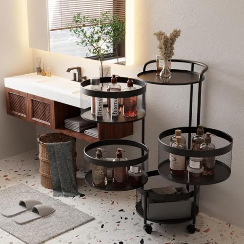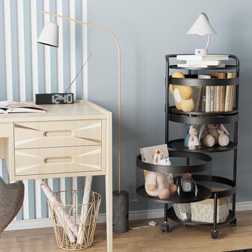 Generic - No Assembly Kitchen Turntable Storage Rack, 4-Tier Round Metal Storage Basket Shelves, Rolling Rolling Tower Organizer with 4 Drawers for Groceries, Fruits, Vegetables (4 Tiers, Black)