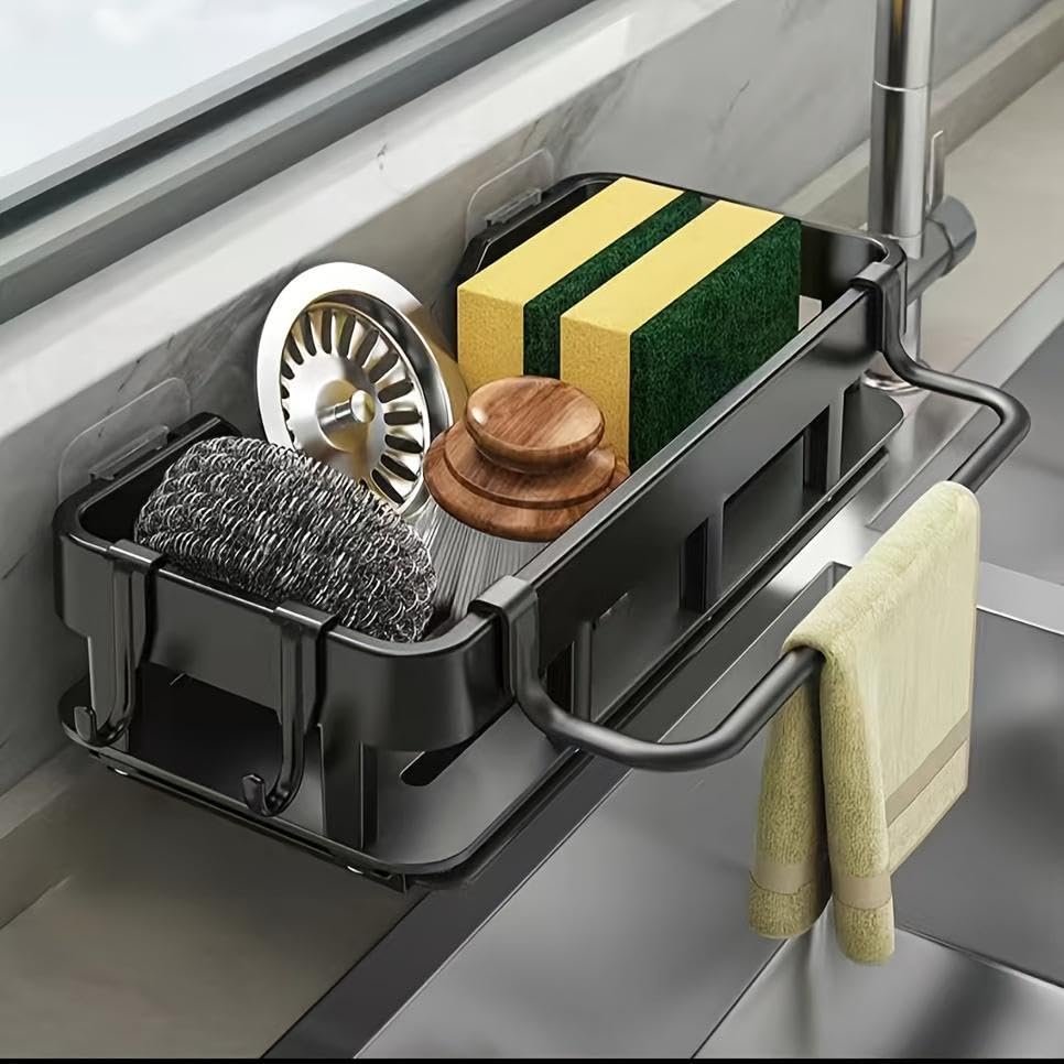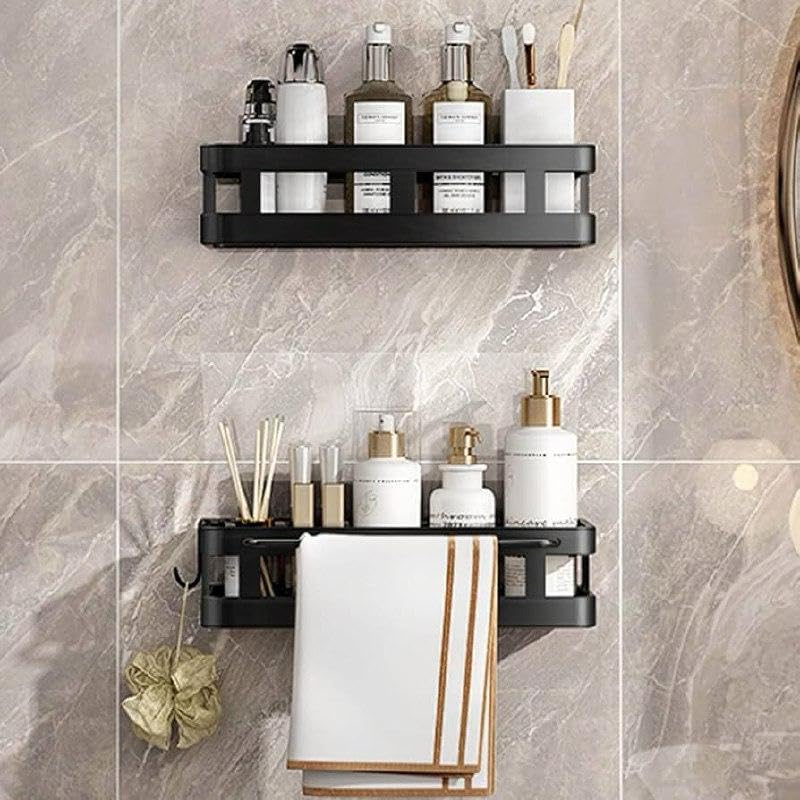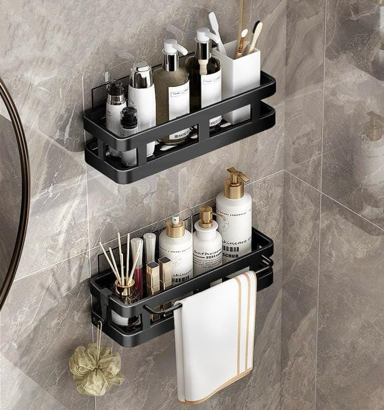 Generic - No‑Drill Adhesive Caddy Shower Shelf, Rust‑Resistant Wall Mounted Bathroom Organizer with Drain Holes, Strong Holder, Space Saver, Organiser for Kitchen Sinks with Drip Tray, Cloth Holder & Hook