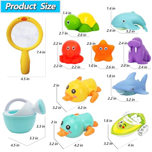 - FUN: Among shower toys, the octopus and starfish will change color auto in 98℉warm water, the wind-up swimming ducks can swim in the water, the amphibious boat can not only swim in the water but also run on the land, catch with fishing net,use the watering can to sprinkle water or water the flowers! Let your child enjoy bathing and swimming